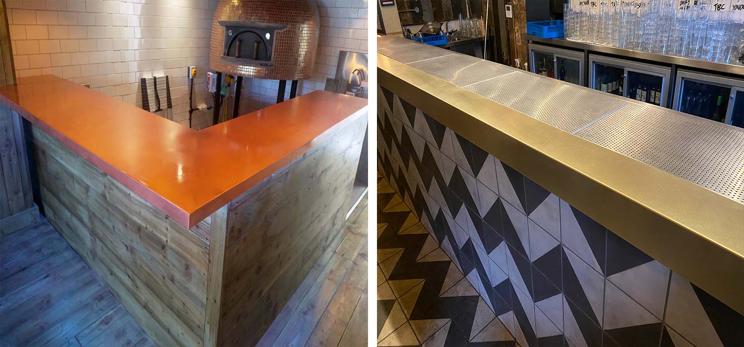 Copper: A timeless and elegant material that develops a beautiful, rich patina over time. Copper bar tops bring warmth and a touch of luxury to any setting, and they possess natural antimicrobial properties.
