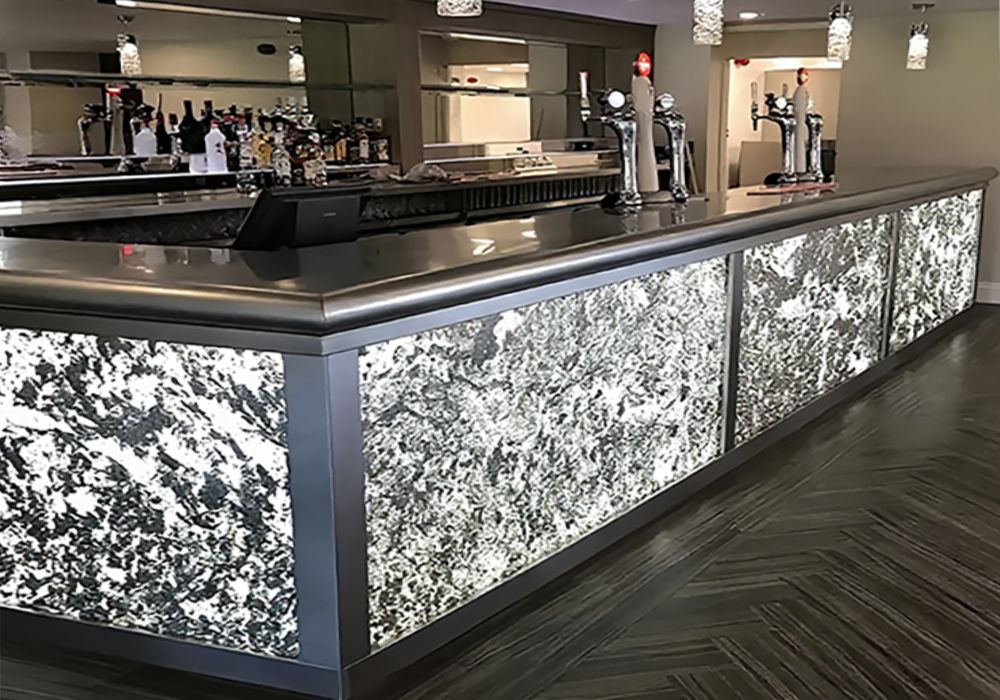 Stainless Steel: The classic choice for a clean, hygienic, and modern look. Our stainless steel bar tops are corrosion-resistant and incredibly easy to clean, making them perfect for high-traffic environments.
